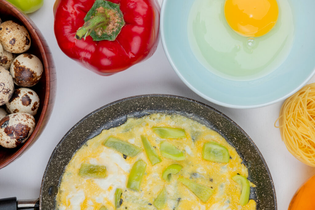 - La base dorada: Bate los huevos con una pizca de sal y pimienta hasta que estén espumosos. Vierte la mezcla de huevo sobre los ingredientes en el sartén, distribuyéndolos uniformemente. Cocina a fuego medio-bajo sin remover durante 4-5 minutos, hasta que los bordes empiecen a cuajarse.
