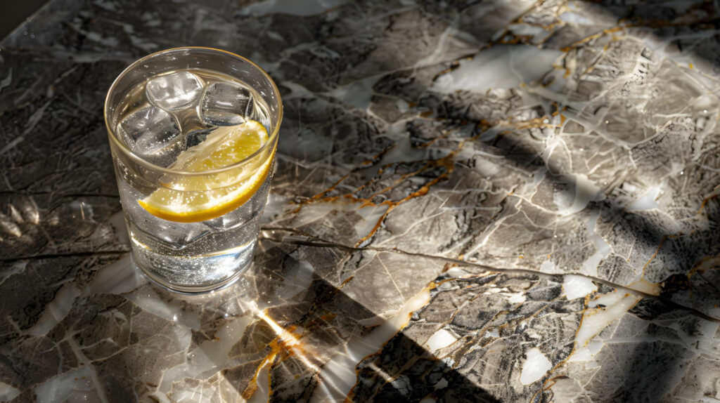 - El vaso: Un vaso bajo (rocks) con un cubo de hielo grande y cristalino. El hielo grande se derrite lentamente, dosificando la dilución sin aguar el espíritu.